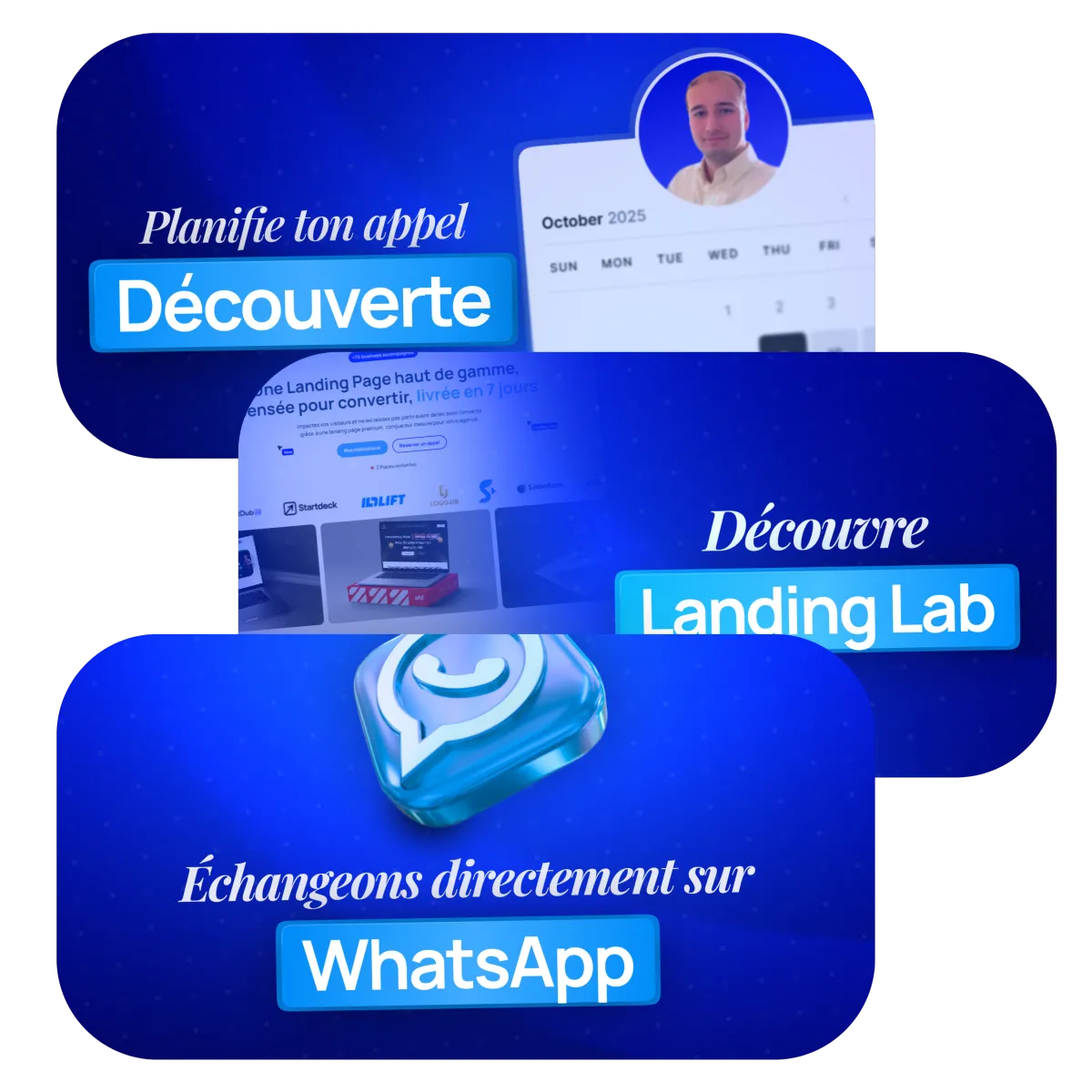 Nous créons ton kit visuel et nous te le livrons en 72h sur WhatsApp.